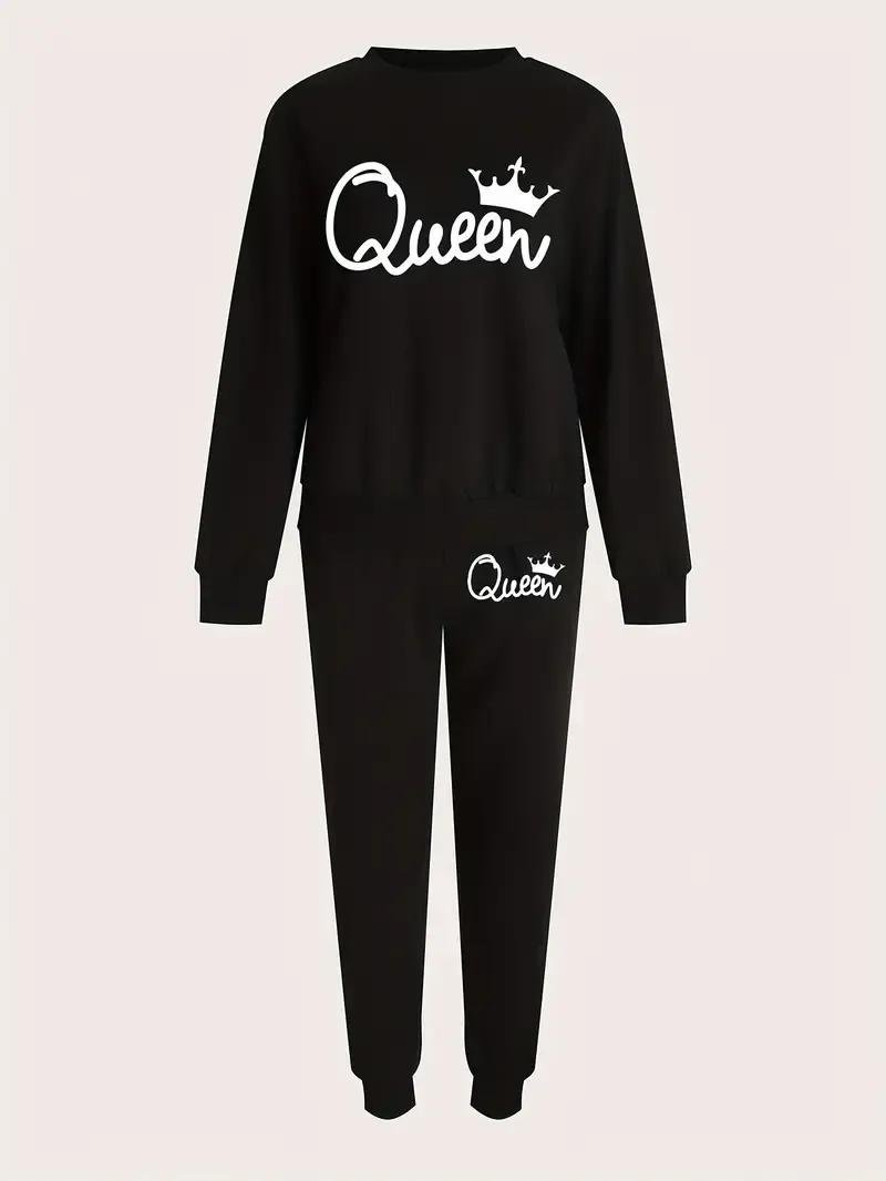 2 Pcs Women’s Stitched Fleece Printed Sweatshirt Tracksuit